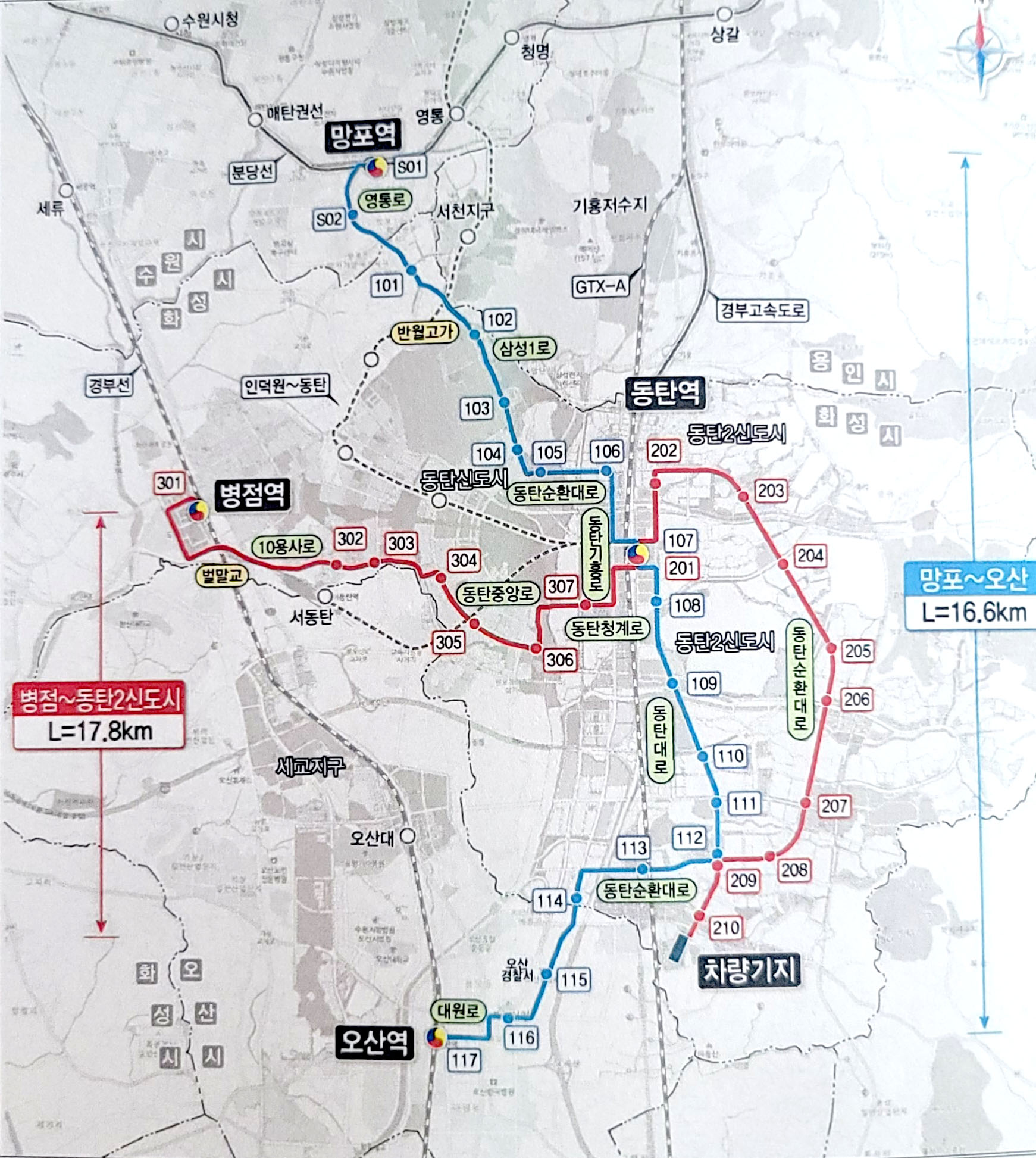 동탄트램2노선 (병점역~동탄역~동탄 차량기지) |